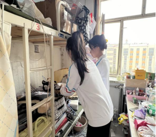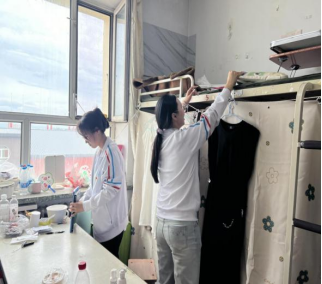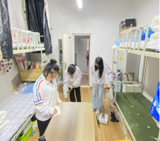 参加新生宿舍打扫活动的志愿者们准时在宿舍楼下指定地点集合。在打扫中每位成员分工明确,各司其职,床铺、地板、门窗甚至是一些小角落大家都不放过。同学们怀着对2024级新生们的期待,热火朝天地忙碌着,为新生营造出一个温馨舒适的居住环境。